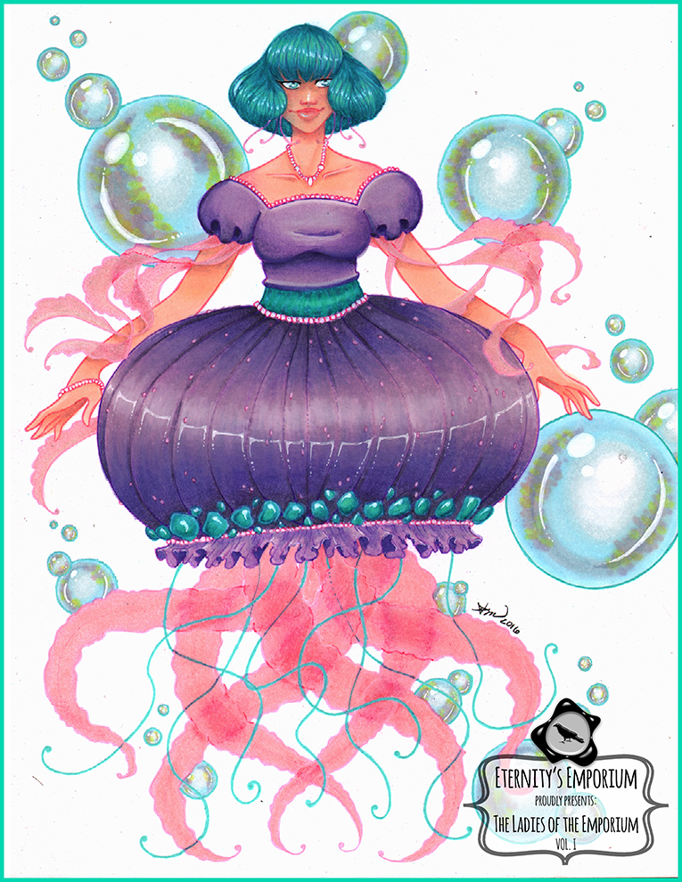 Janelle is not a frequent visitor of the Emporium, but is always a delight when she can make it. It’s a hard trip from the ocean, and when she visits she has to come in a giant tank full of salt water. She and Takumi tend to synchronize their visits to make trips easier.