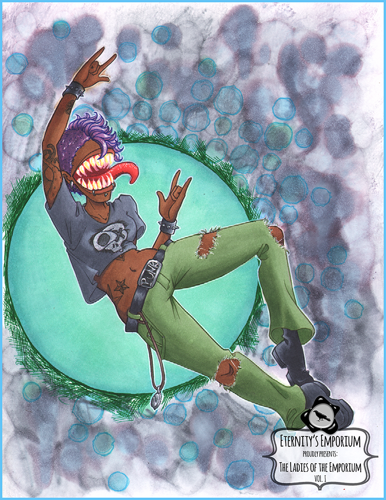 Melanie, aka “Mel” likes to come into the Emporium with her little sister on the weekends for tea and snacks from the Emporium’s bakery. She’s very much into the punk aesthetic and loves punk and hard rock music as well!