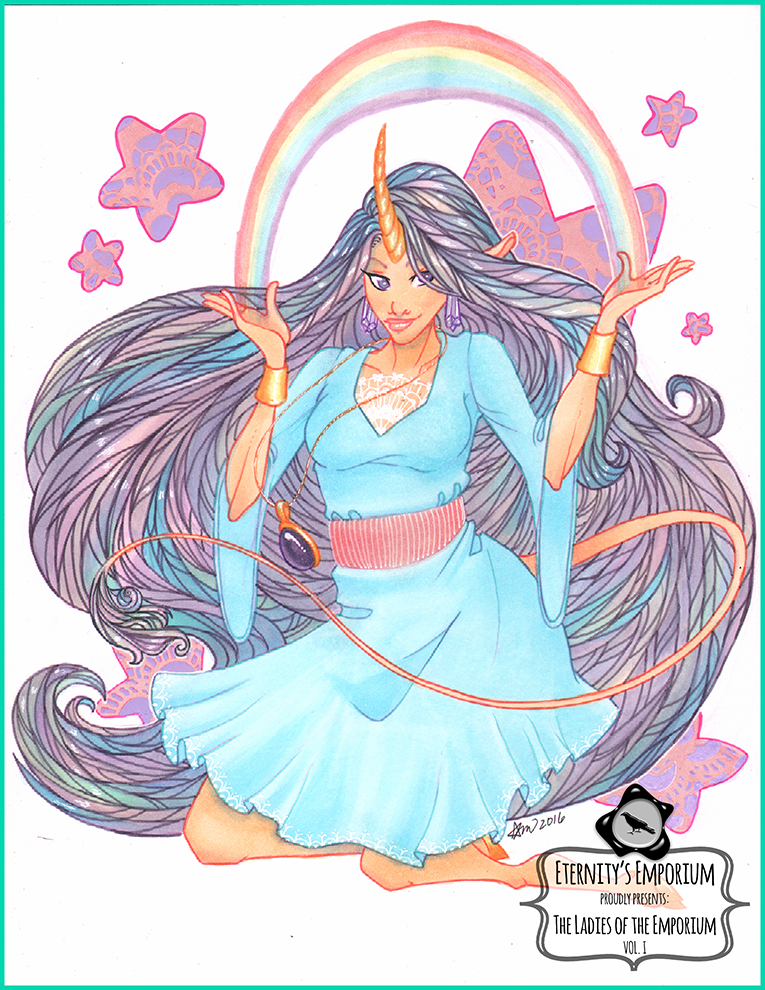 Melody brings the Emporium its supply of fairy dust, wild mushrooms, phoenix feathers, bottled rainbows, and other magical items that are fairly rare and difficult to find. She has a sweet tooth, and loves the treats that she can buy in the Emporium’s bakery!